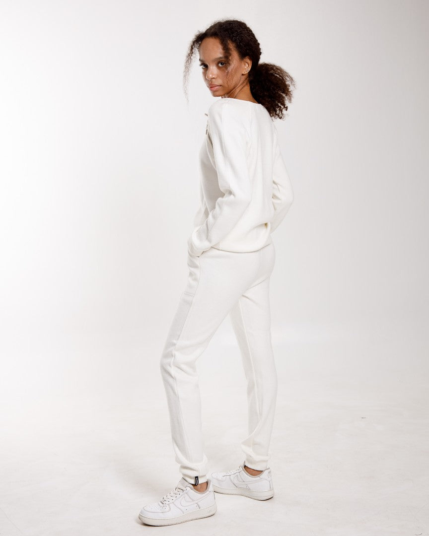 The Aurora Set is a refined take on everyday comfort. Crafted from a soft angora-blend knit, this two-piece set features a relaxed-fit jumper accented with elegant decorative zips at the neckline, adding a subtle modern edge. The matching jogger trousers are designed with a comfortable elastic waistband and a clean, streamlined silhouette.