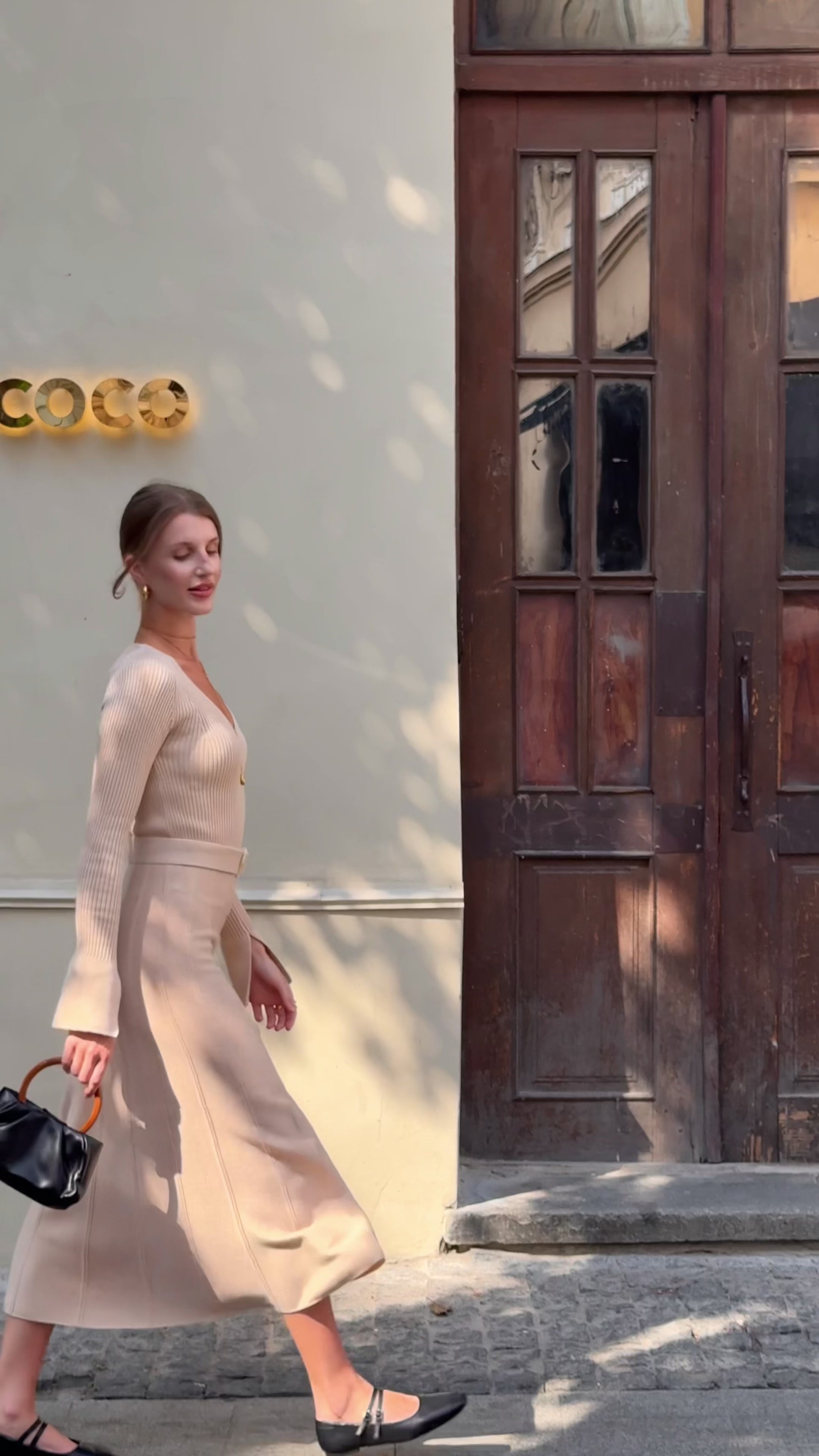 This exquisite feminine dress is designed to highlight your natural beauty with its flattering fitted silhouette and flared skirt. Made from natural cotton thread, it offers a soft, breathable, and lightweight feel, perfect for daytime elegance. The dress features a graceful V-neckline and long sleeves, exuding a timeless charm.